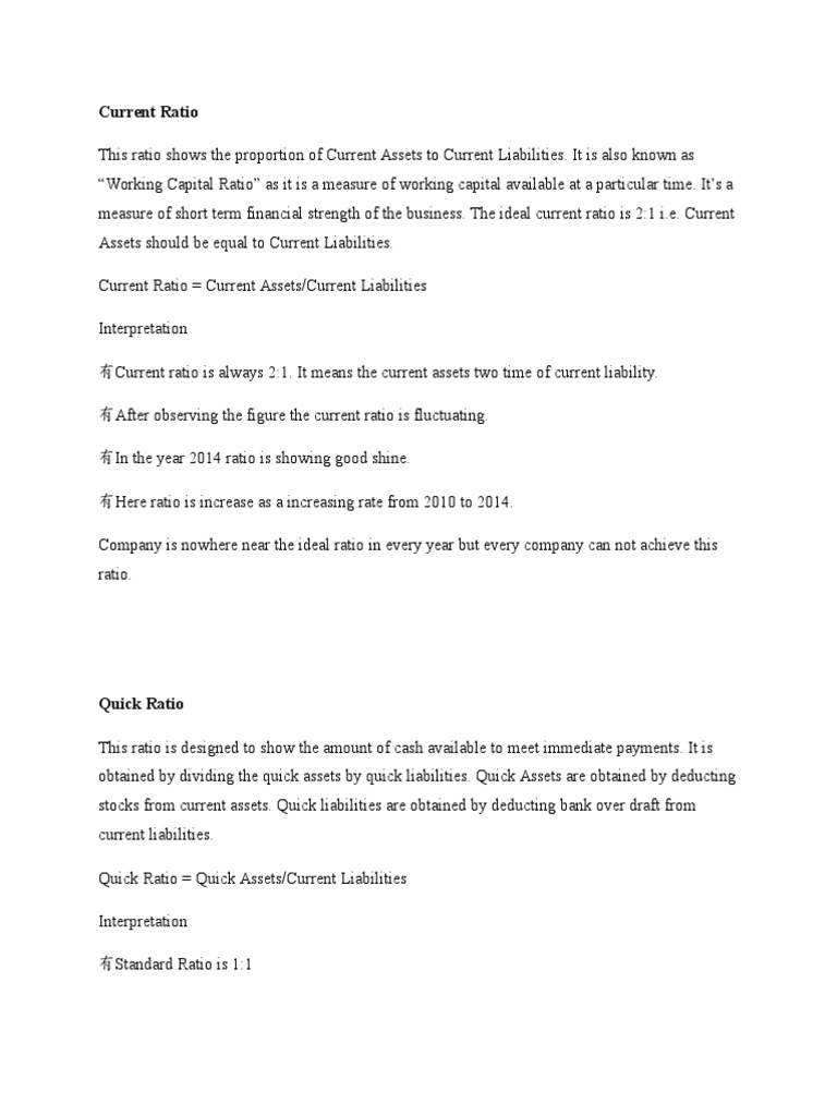 This ratio shows the proportion of Current Assets to Current Liabilities. It is also known as