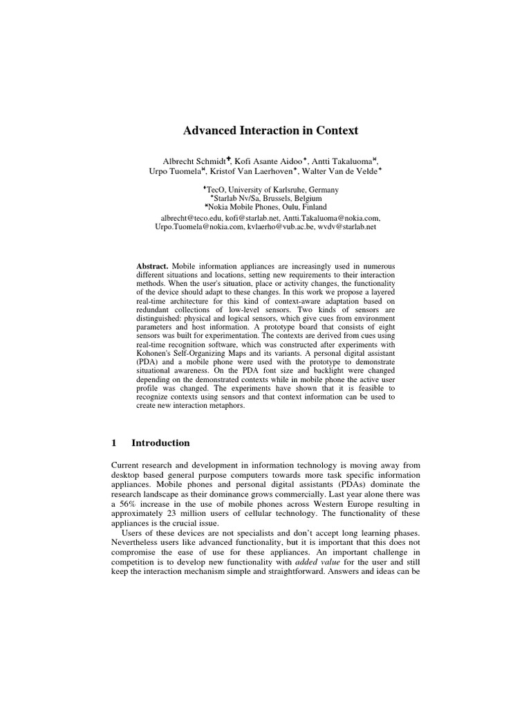 [12] Schmidt, A., Beigl, M., Gellersen, H.-W. There is more to context than location. Proc. of