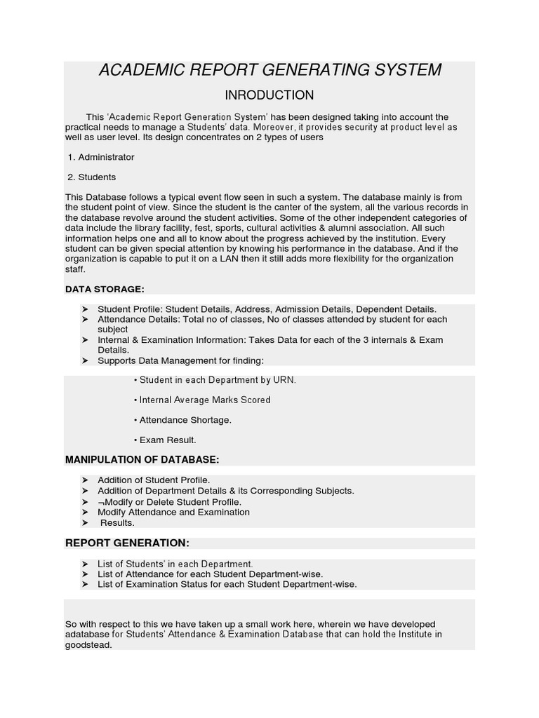 adatabase for Students Attendance & Examination Database that can hold the Institute in
