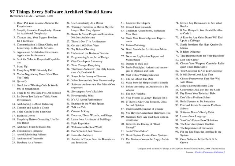 Compiled from the book 97 Things Every Software Architect Should Know, 2009, OReilly Media