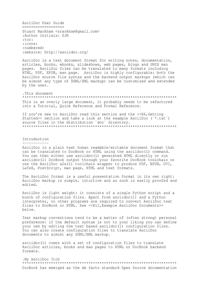 -----------AsciiDoc is a plain text human readable/writable document format that