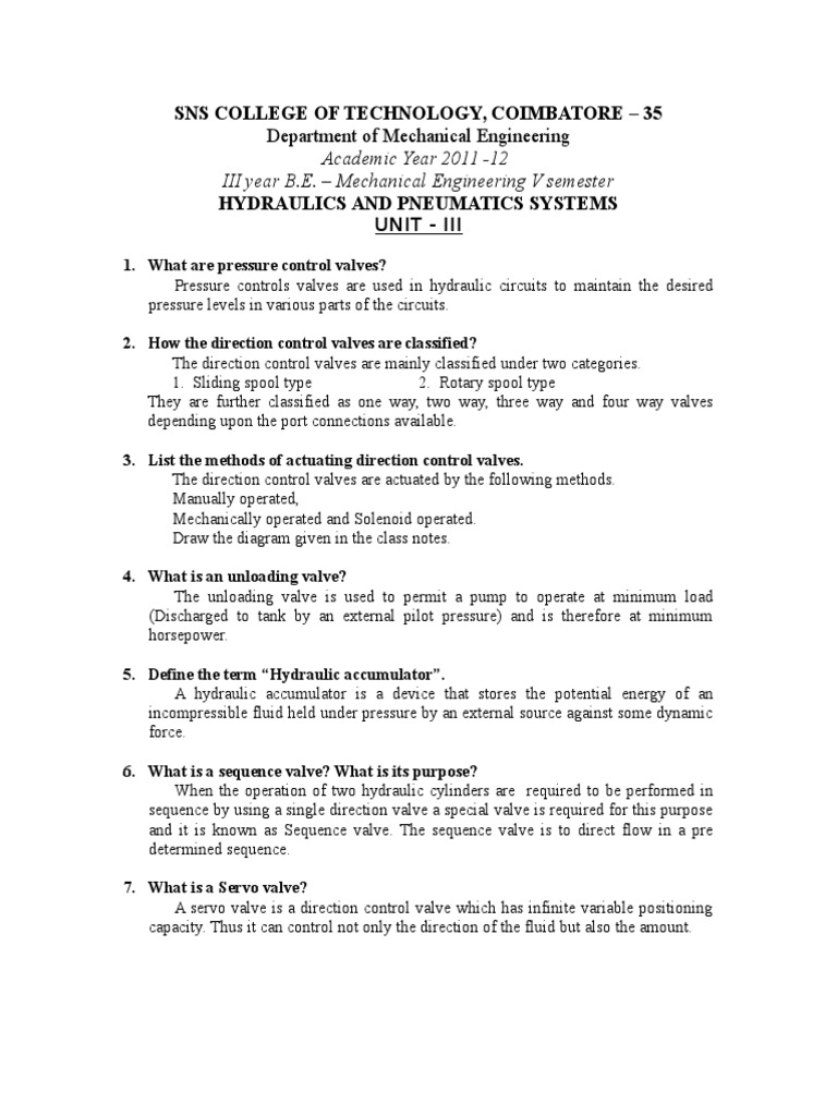 HYDRAULICS AND PNEUMATICS SYSTEMS