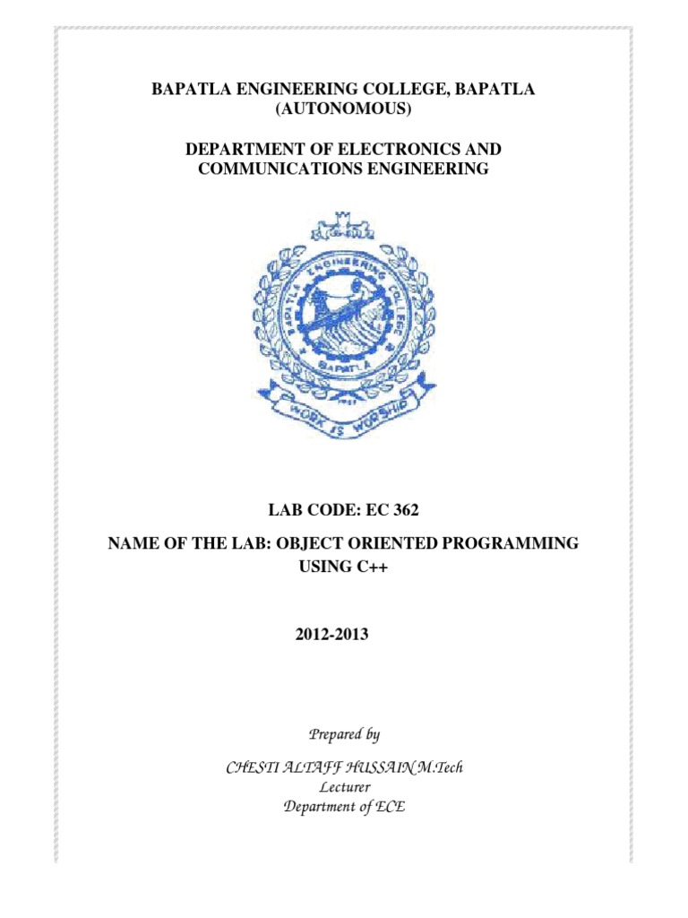 NAME OF THE LAB: OBJECT ORIENTED PROGRAMMING