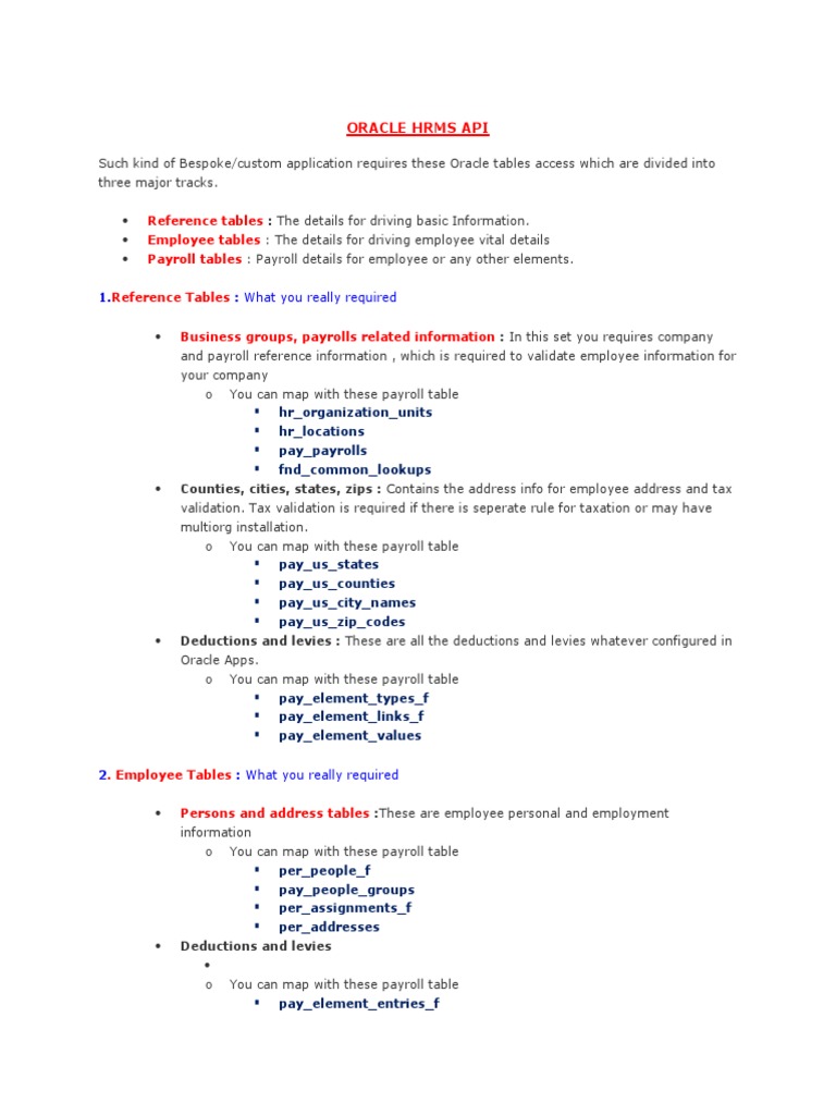 Oracle APIs are a logical grouping of all external process routines. The Oracle HRMS API sets delivers