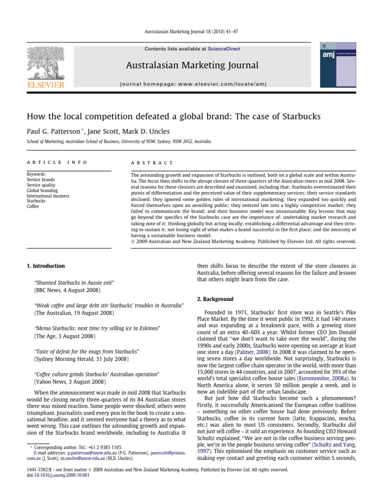 Mescall, J., 2008. Starbucks in Australia: where did it go wrong? Unleashed, 7 August.