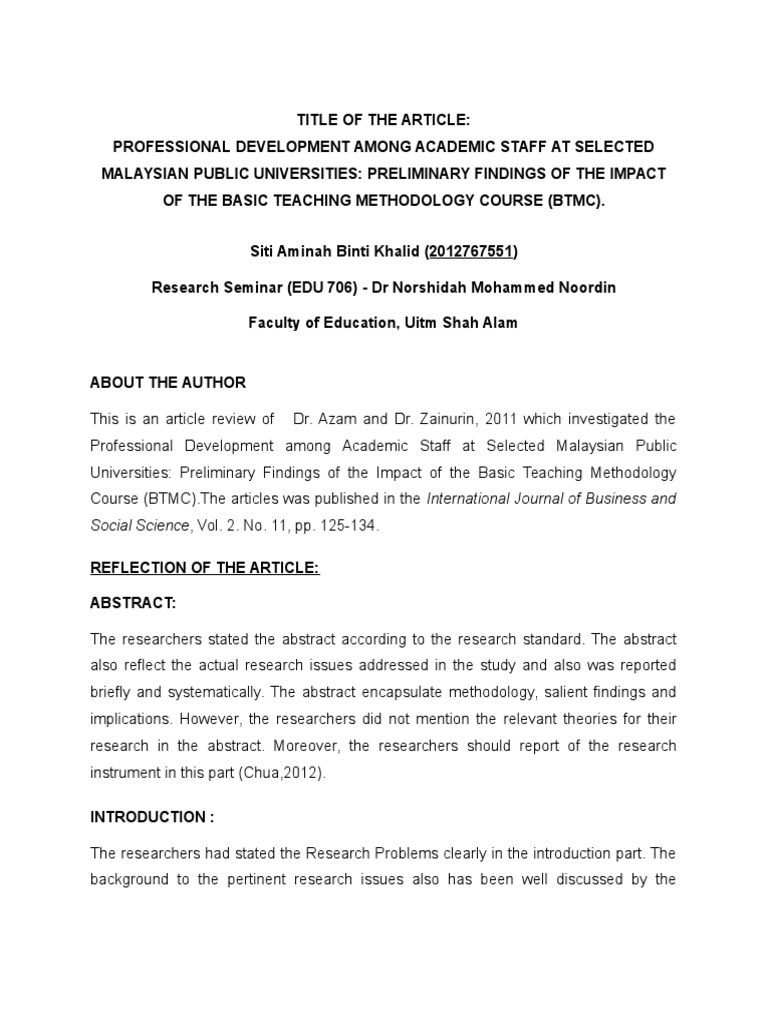 Course (BTMC).The articles was published in the International Journal of Business and