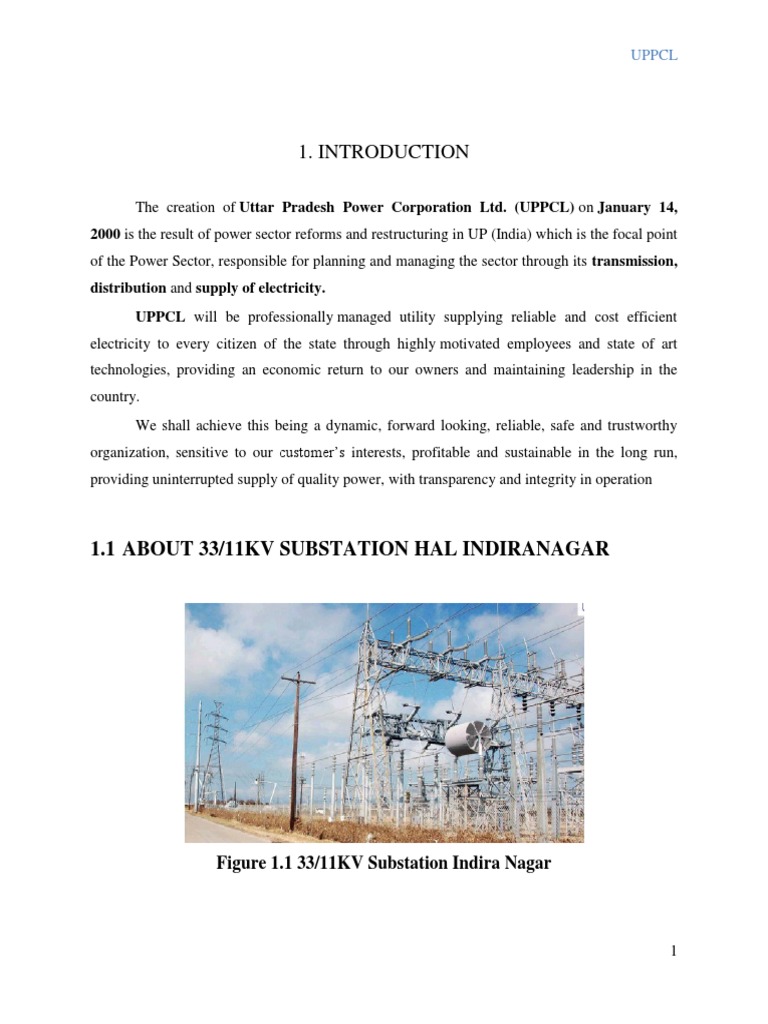 1.1 ABOUT 33/11KV SUBSTATION HAL INDIRANAGAR