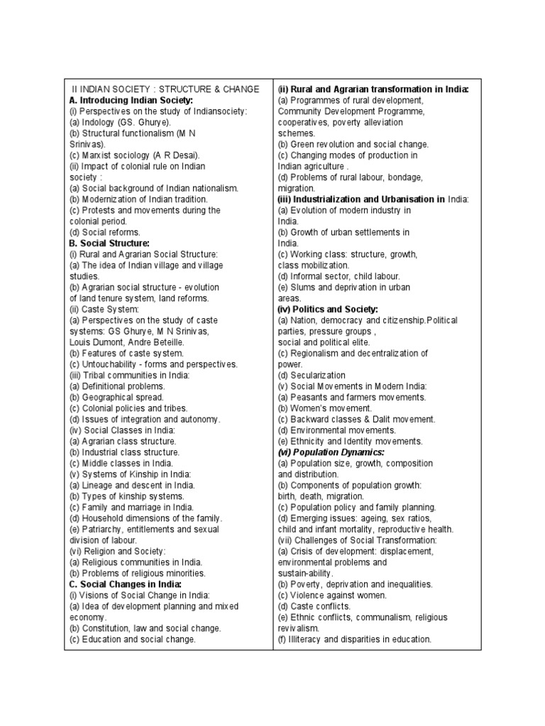 II INDIAN SOCIETY : STRUCTURE & CHANGE