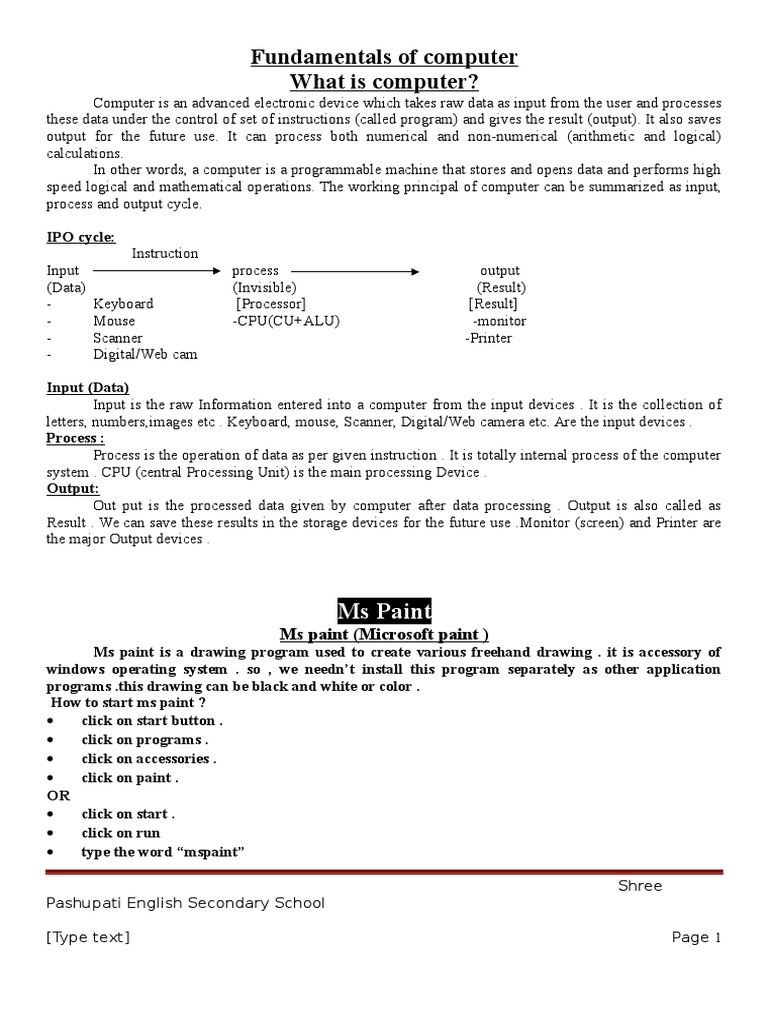 Computer is an advanced electronic device which takes raw data as input from the user and processes