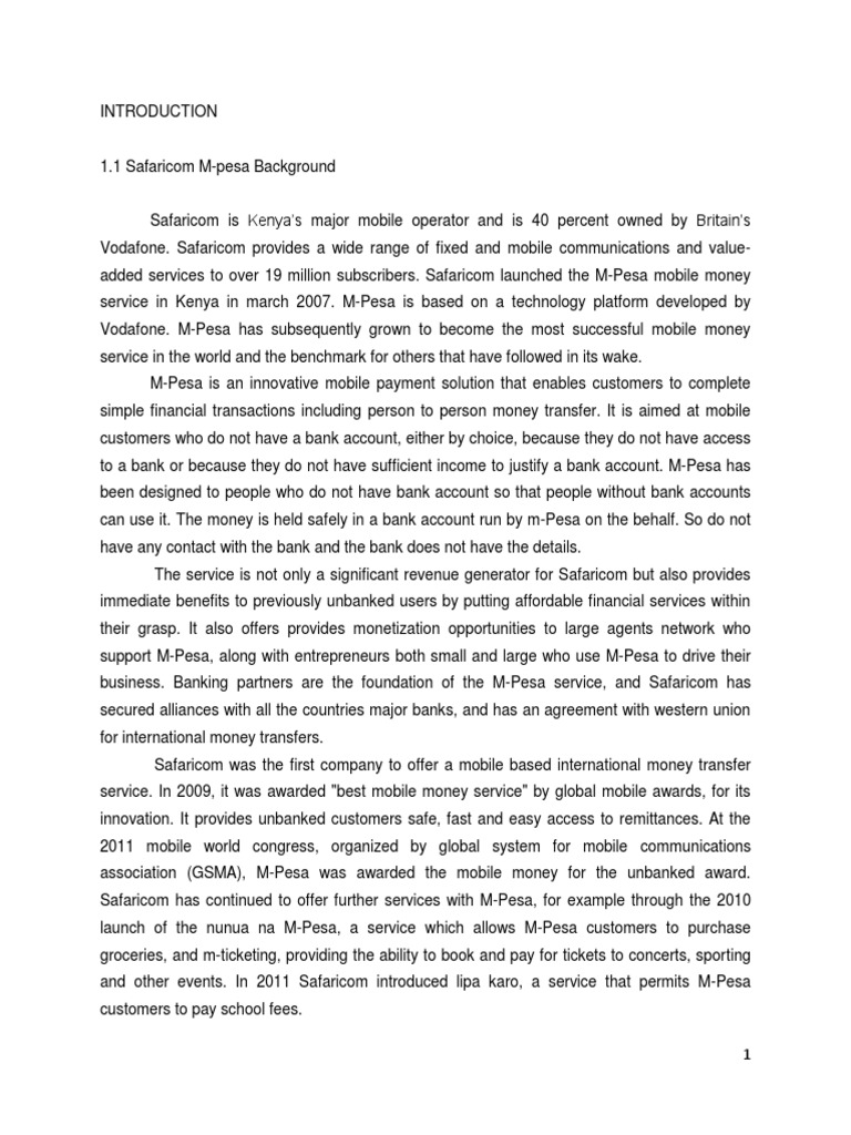 to a bank or because they do not have sufficient income to justify a bank account. M-Pesa has
