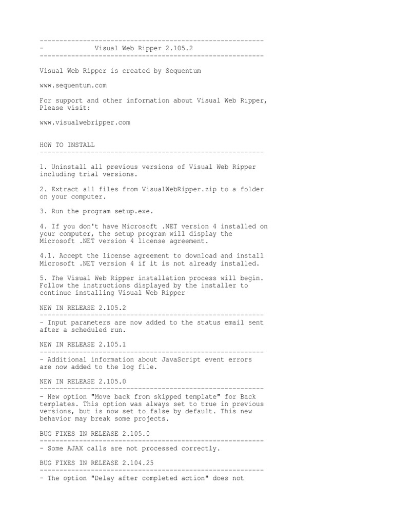 --------------------------------------------------------1. Uninstall all previous versions of Visual Web Ripper