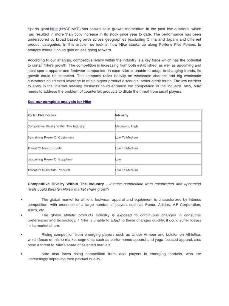 product categories. In this article, we look at how Nike stacks up along Porters Five Forces, to