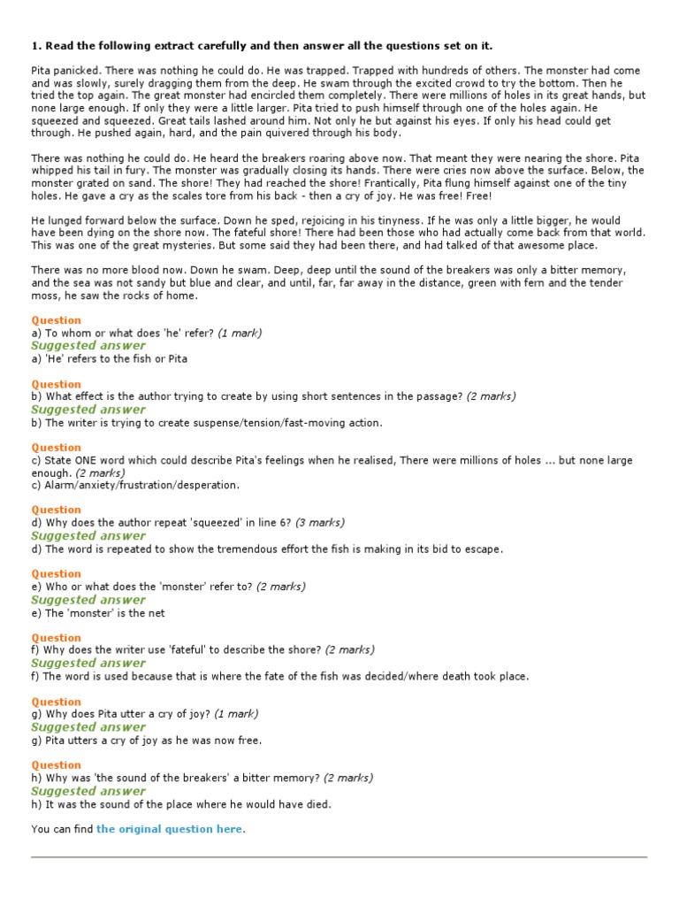 (Question taken from English A Paper 02-Specimen Paper 2002/Items 53-60)