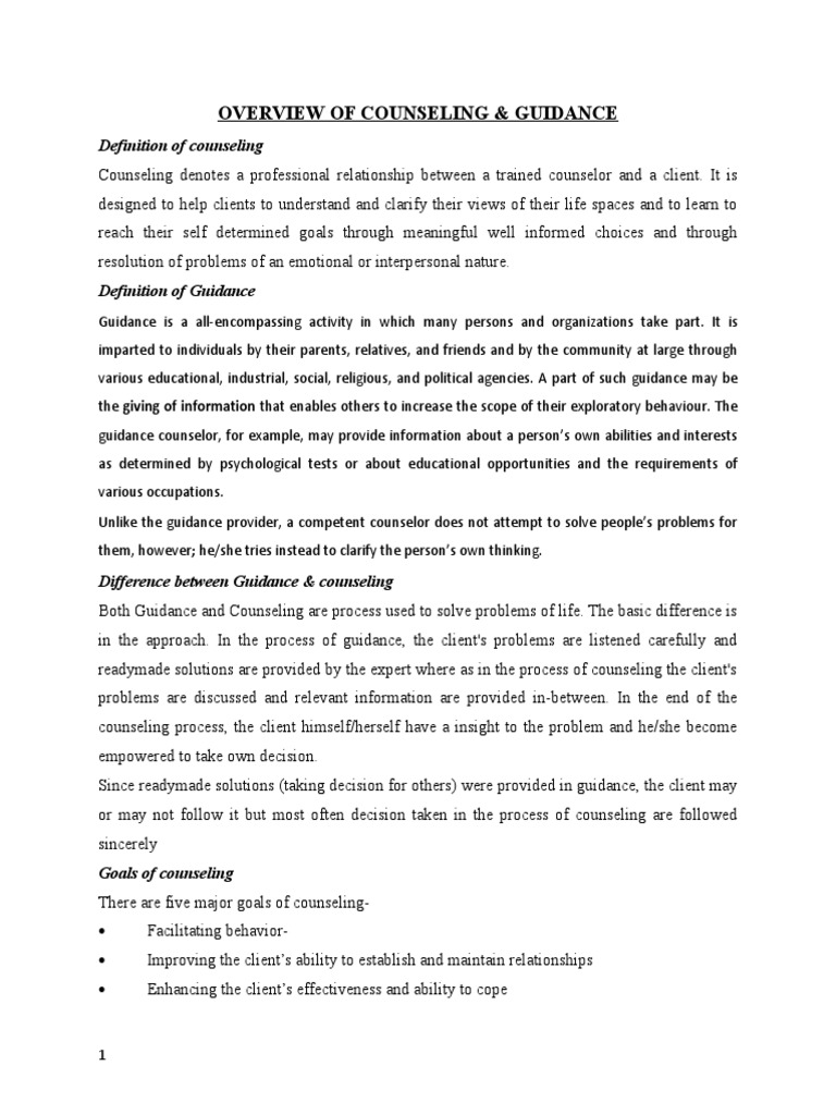 OVERVIEW OF COUNSELING & GUIDANCE