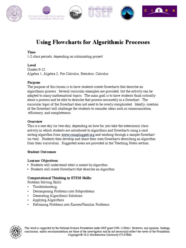(or two). Students then develop and share their own flowcharts describing an algorithm