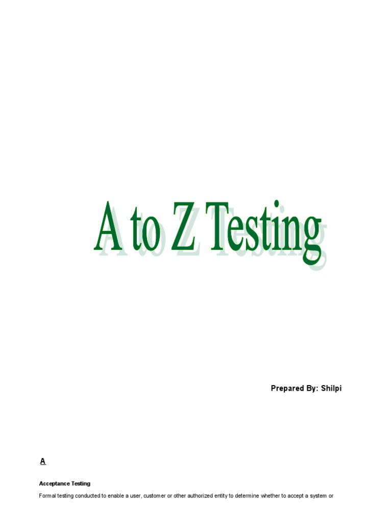 A test type is focused on a specific test objective, i.e. reliability test, usability test, regression test etc., and may take place on one or