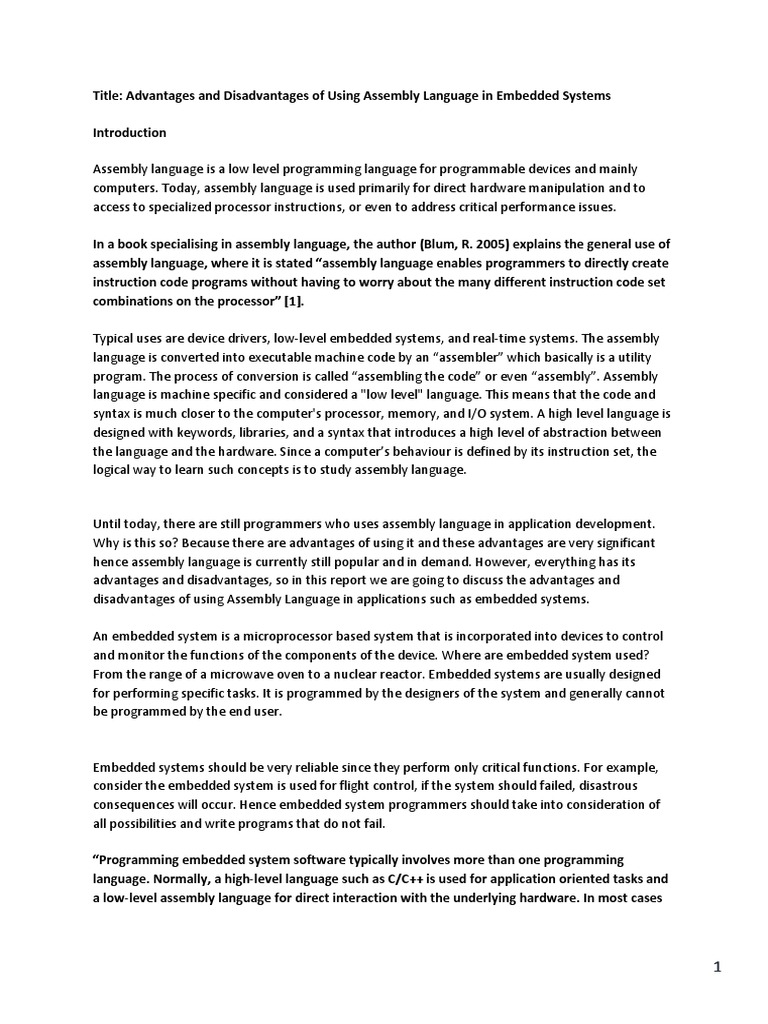 Title: Advantages and Disadvantages of Using Assembly Language in Embedded Systems