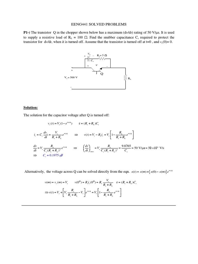 transistor for dv/dt, when it is turned off. Assume that the transistor is turned off at t=0 , and vc(0)= 0.