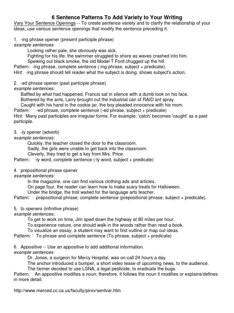 Vary Your Sentence Openings -- To create sentence variety and to clarify the relationship of your