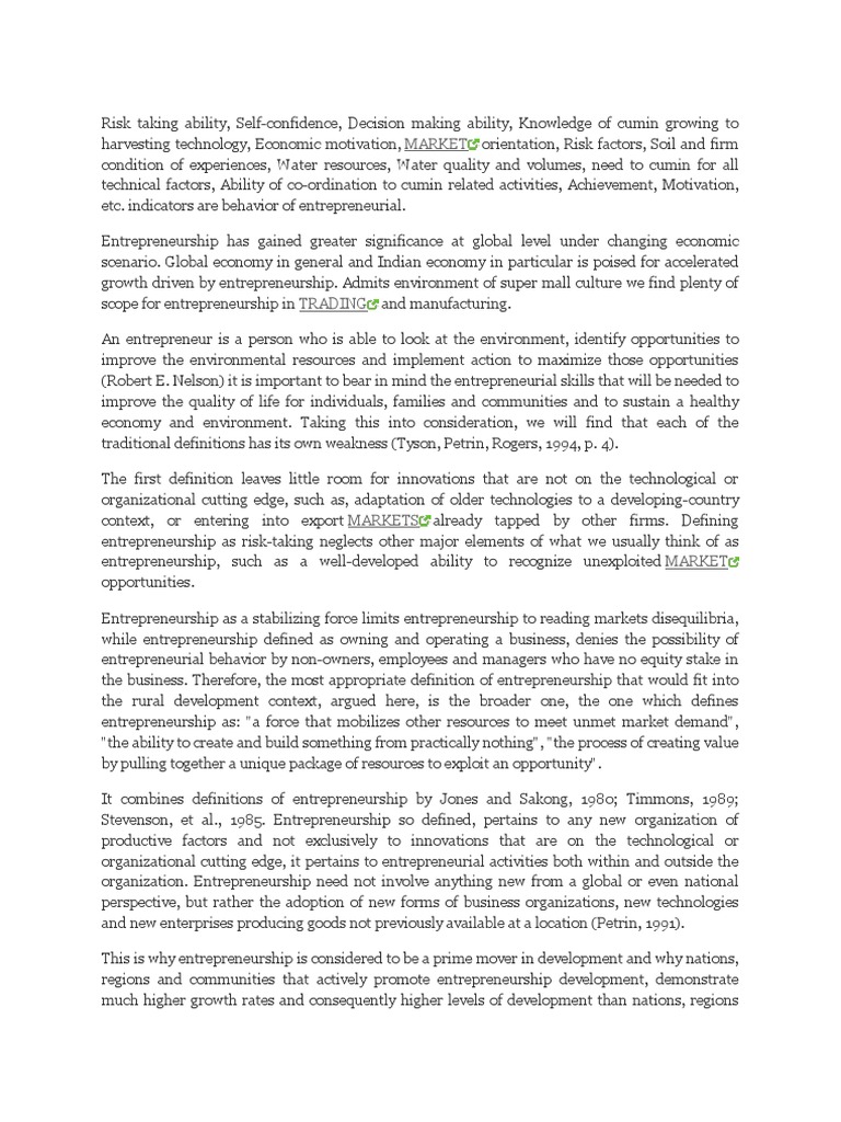 entrepreneurship, such as a well-developed ability to recognize unexploited MARKET