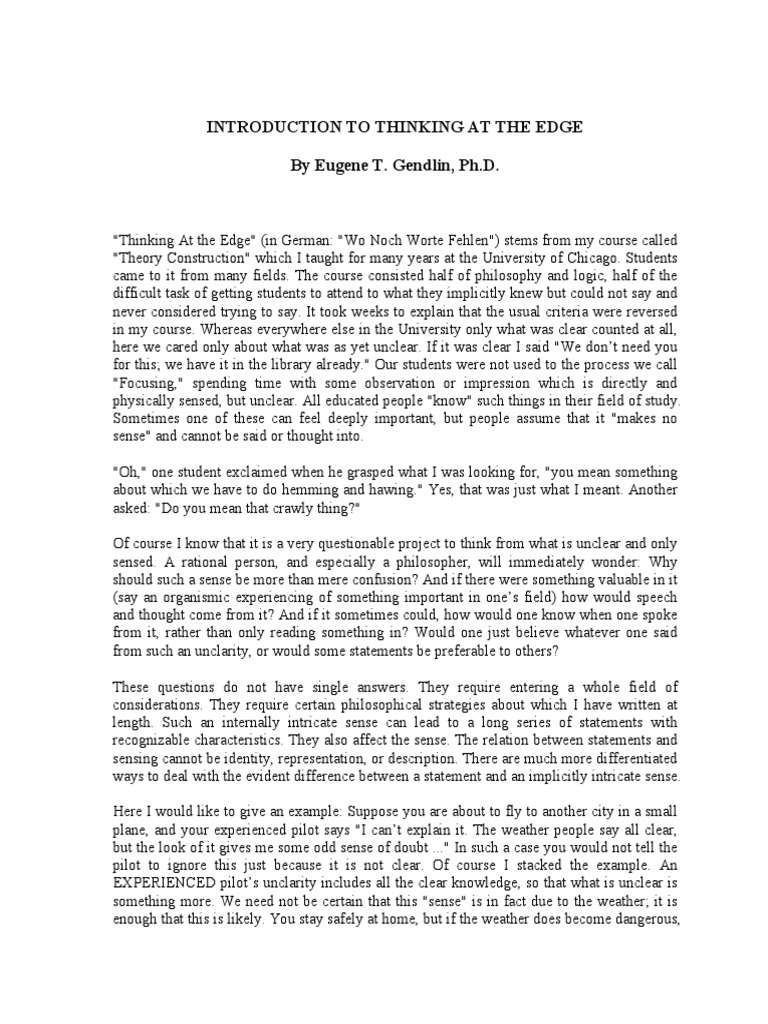 "Thinking At the Edge" (in German: "Wo Noch Worte Fehlen") stems from my course called