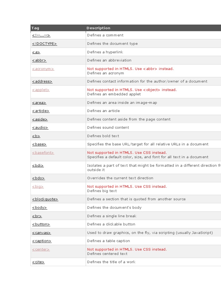 Not supported in HTML5. Use <abbr> instead.