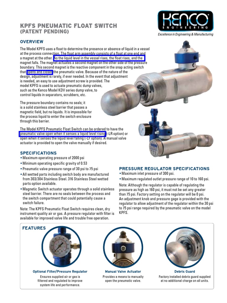 Kenco Pneumatic Float Switch