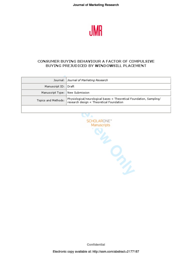Purchasing Behavior, Journal of Applied Psychology, 50 (3), 255-256.