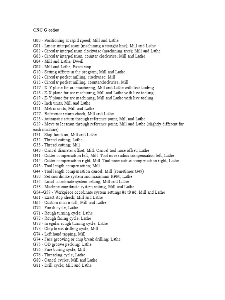 CNC G codes