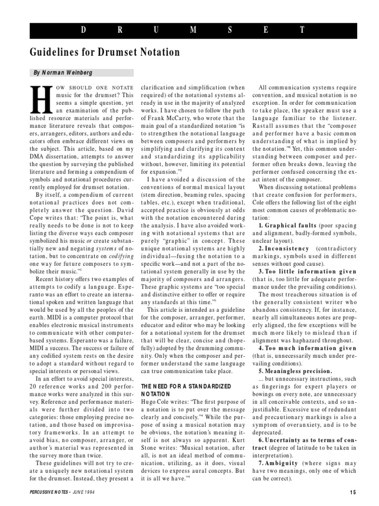 fact, this system would be applicable for each of the 220 publications analyzed in this survey. As drumset performance requirements advance past their current point, these guidelines can be expanded to fit the needs of both the composer