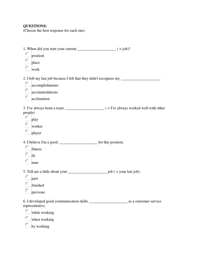 8. Some of my ___________________ included helping customers, filing complaints, and dealing with