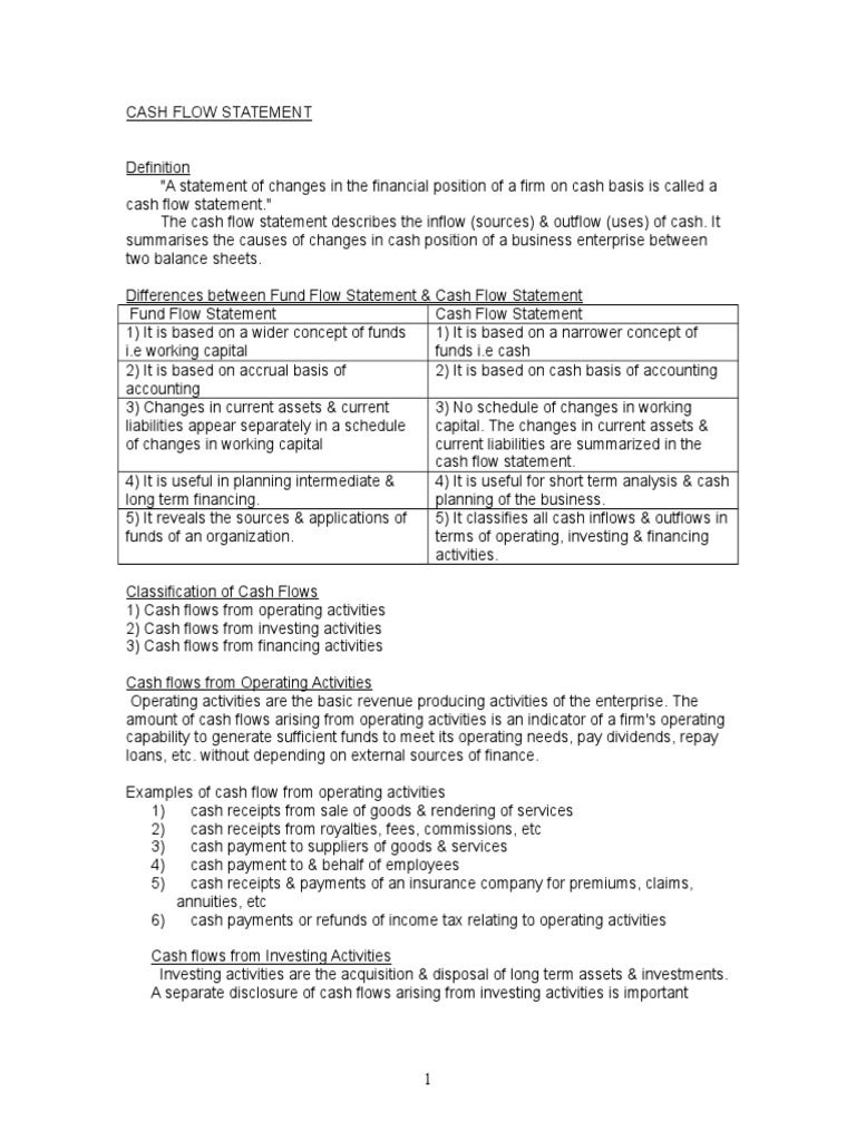 The cash flow statement describes the inflow (sources) & outflow (uses) of cash. It