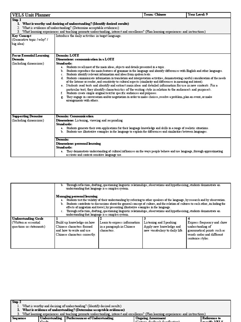 Speaking: Apply conversations in Chinese in every b. Organise excursion to create an linguistic