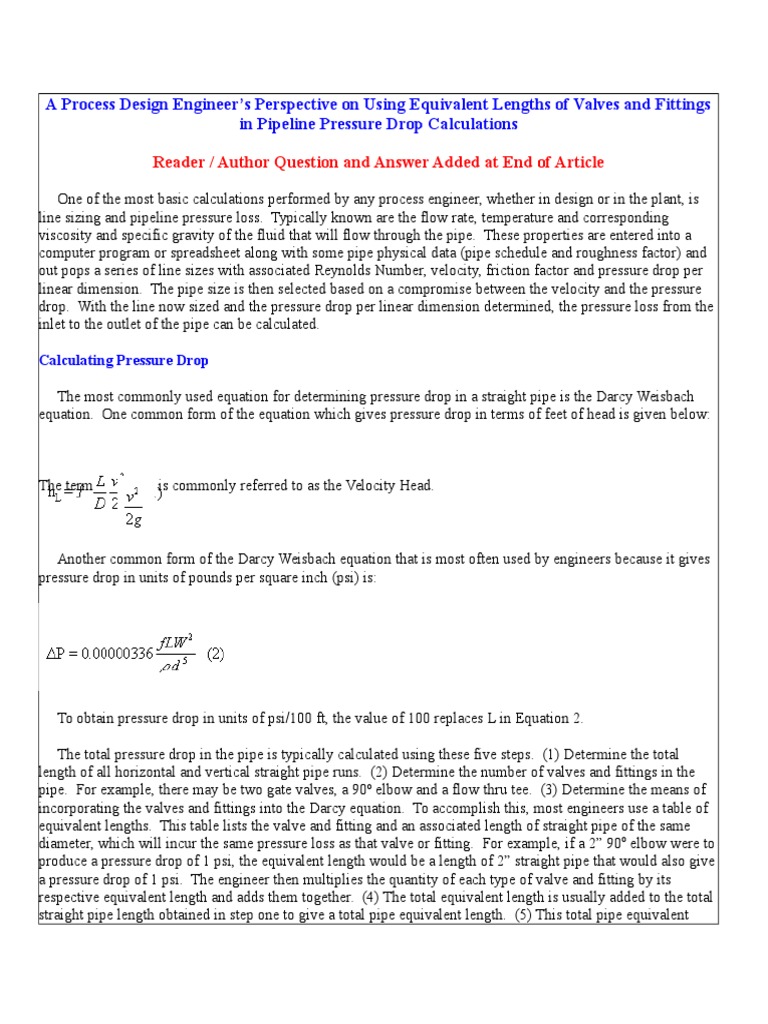 A Process Design Engineers Perspective on Using Equivalent Lengths of Valves and Fittings