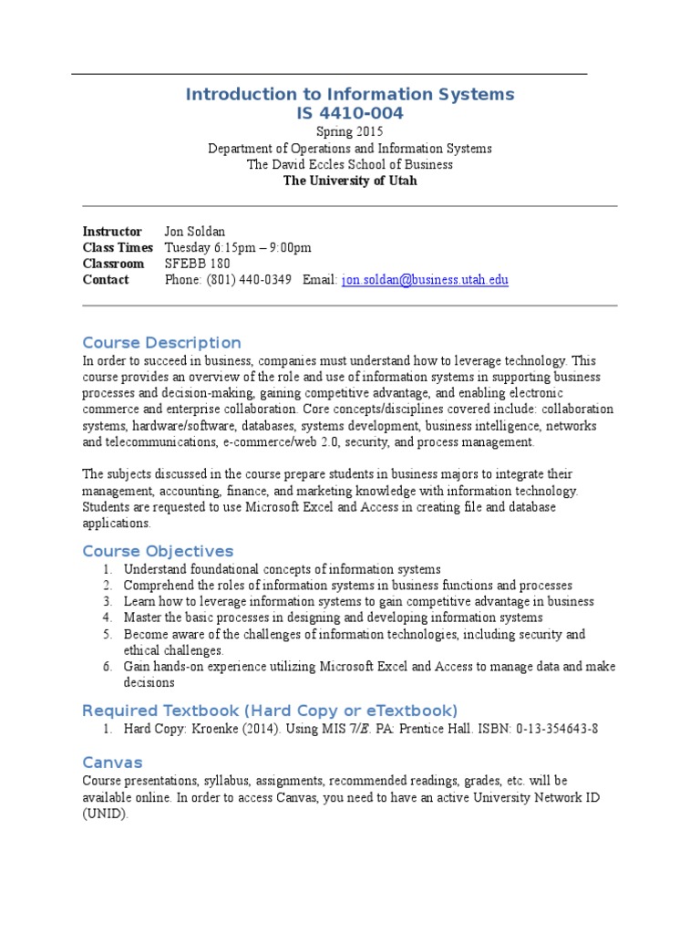 1. Hard Copy: Kroenke (2014). Using MIS 7/E. PA: Prentice Hall. ISBN: 0-13-354643-8