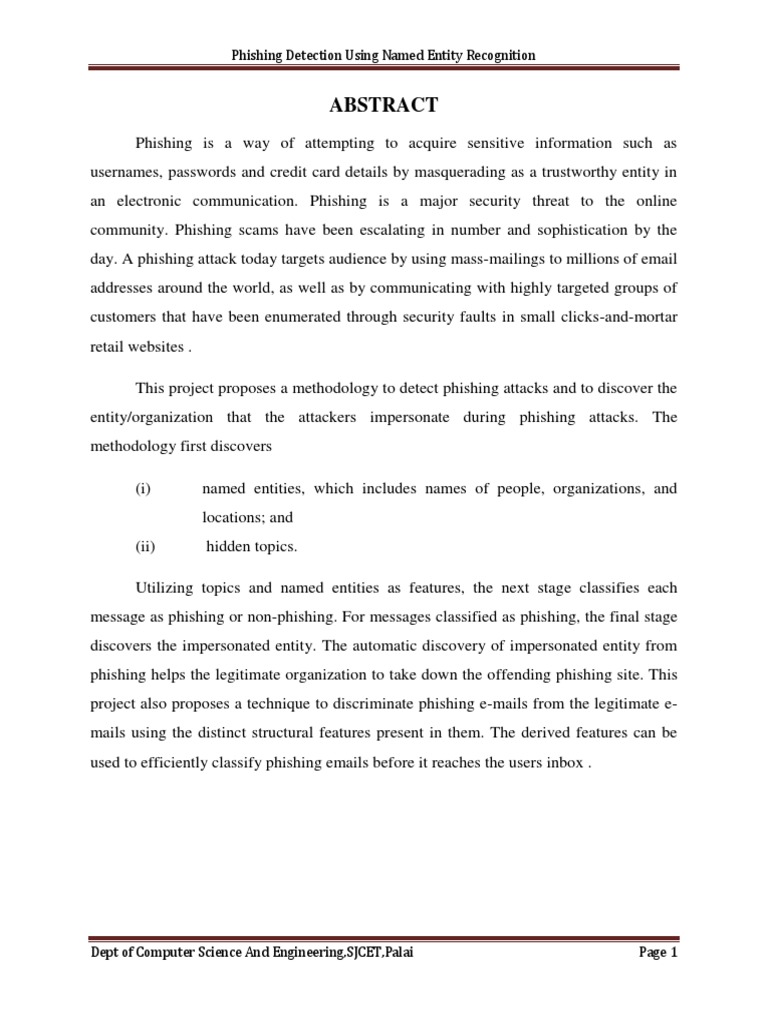project also proposes a technique to discriminate phishing e-mails from the legitimate emails using the distinct structural features present in them. The derived features can be