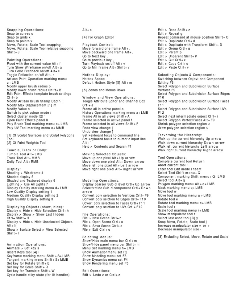 Toggle Reflection on/off Alt+r Hotbox Display: Selecting Objects & Components: