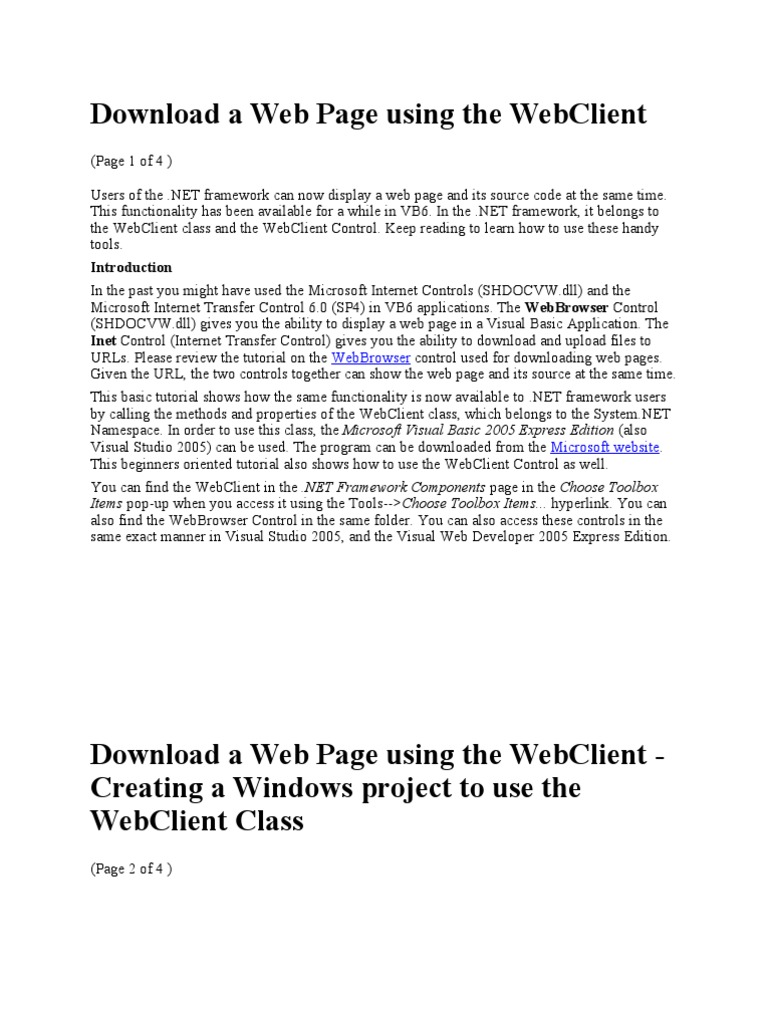 the WebClient class and the WebClient Control. Keep reading to learn how to use these handy