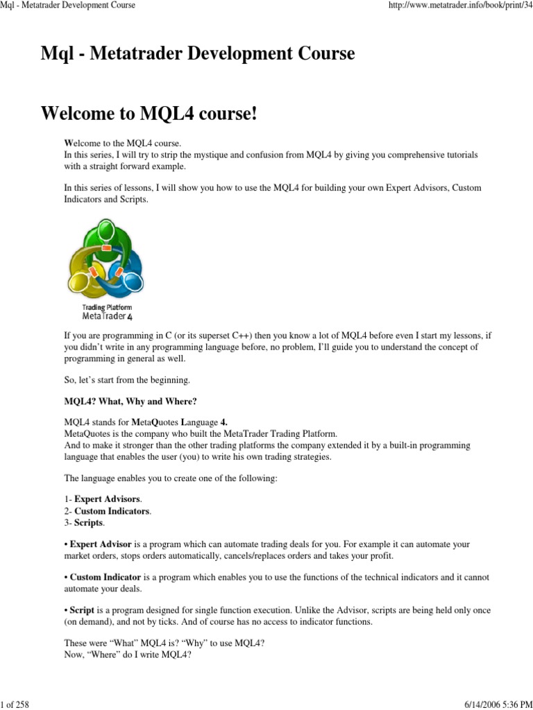 If you are programming in C (or its superset C++) then you know a lot of MQL4 before even I start my lessons, if