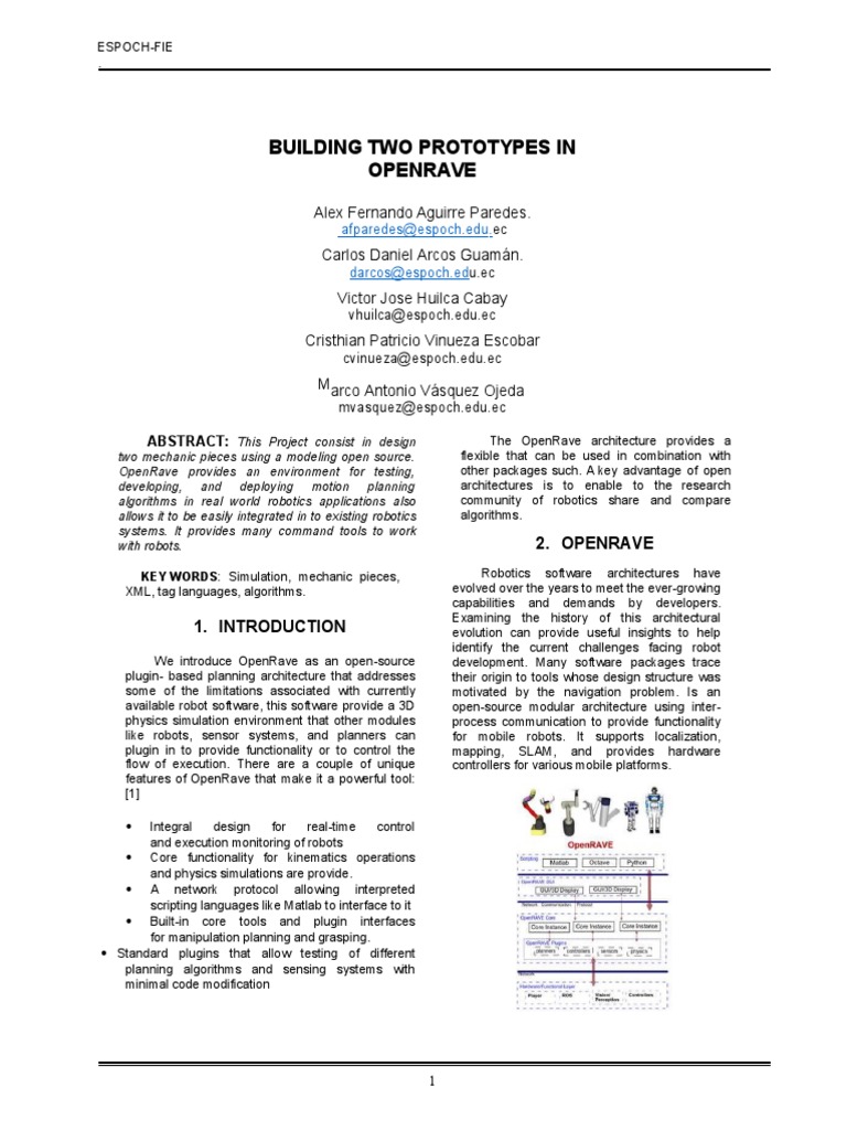 hardware. OpenRave was developed as an opensource tool designed specificially for humanoid