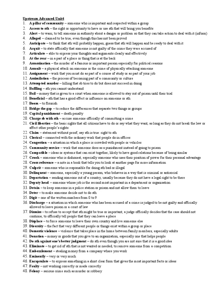 97. Plead guilty or innocent – to say in a court of law whether you are guilty of a crime or not