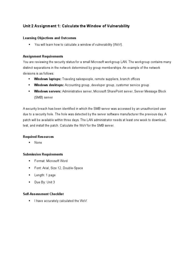 Unit 2 Assignment 1: Calculate the Window of Vulnerability