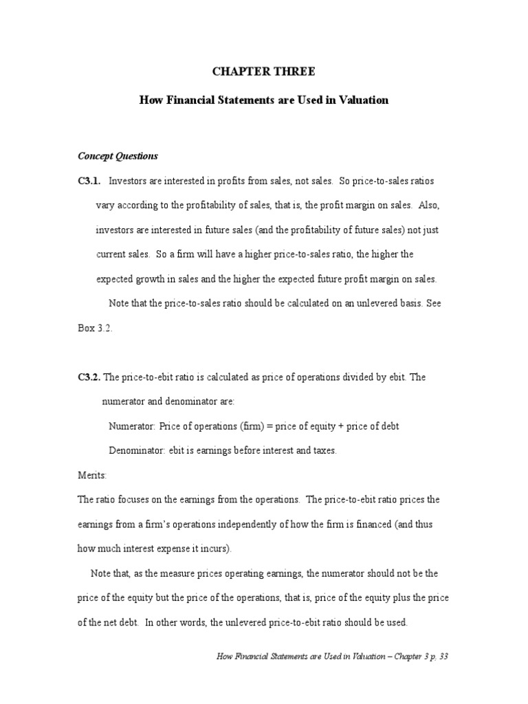 How Financial Statements are Used in Valuation Chapter 3 p. 33