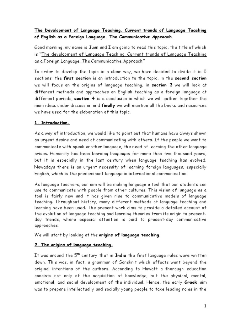 the evolution of language teaching and learning theories from its origin to presentday trends, where especial attention is paid to present-day communicative