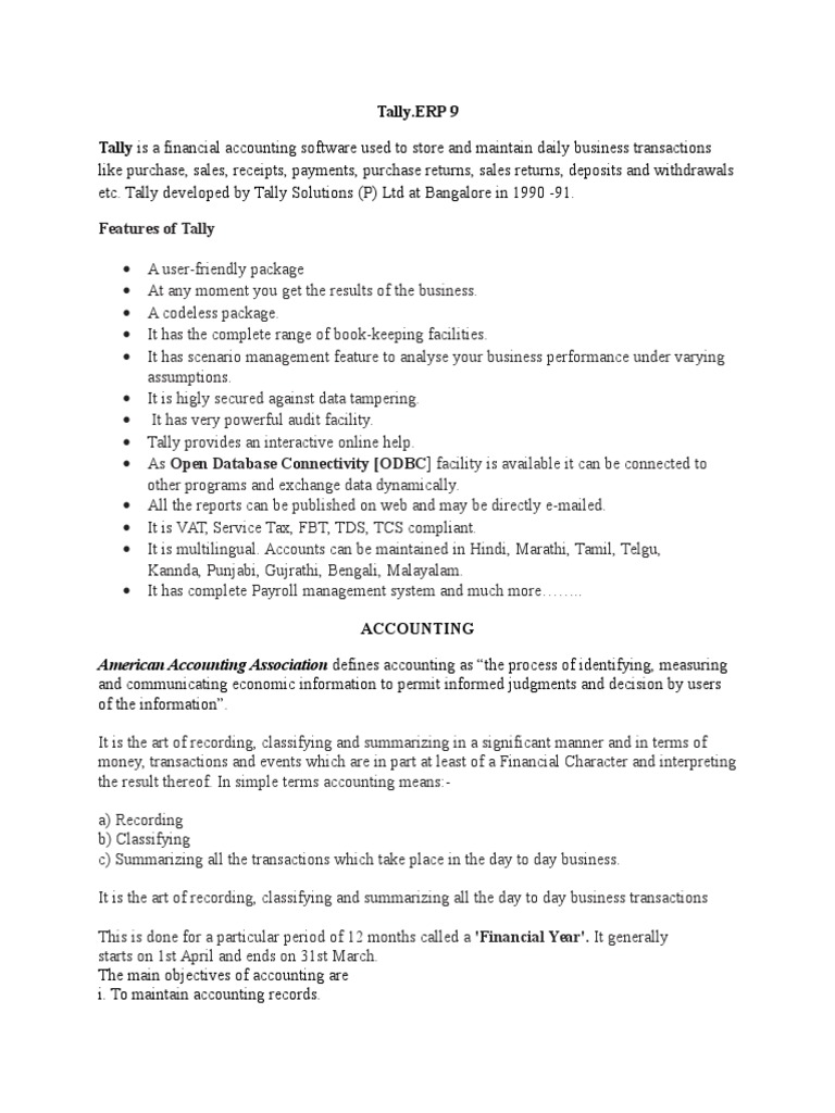 etc. Tally developed by Tally Solutions (P) Ltd at Bangalore in 1990 -91.