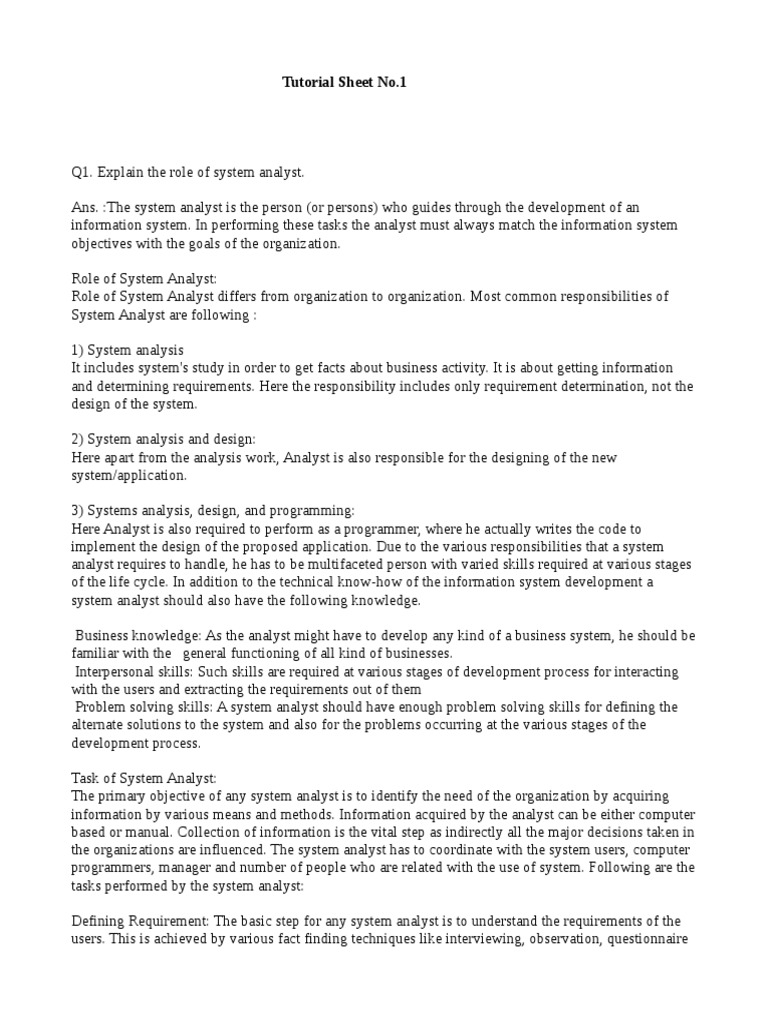Ans. :The system analyst is the person (or persons) who guides through the development of an