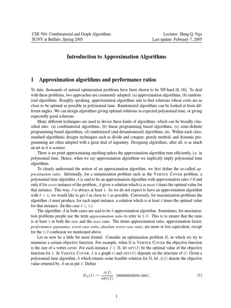 is the size of a vertex cover. For each instance I , let OPT(I) be the optimal value of the objective