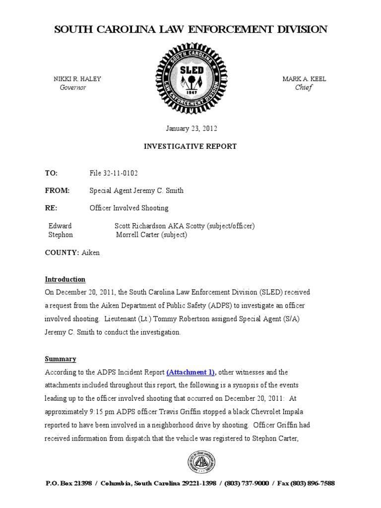 On December 20, 2011, the South Carolina Law Enforcement Division (SLED) received