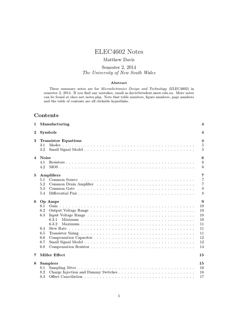 These summary notes are for Microelectronics Design and Technology (ELEC4602) in
