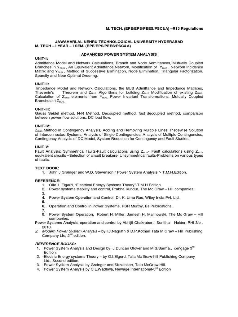 1. John J.Grainger and W.D. Stevenson, Power System Analysis - T.M.H.Edition.